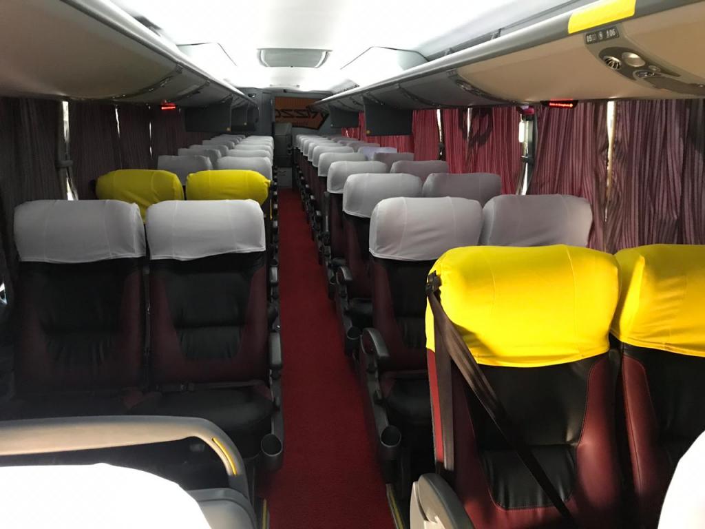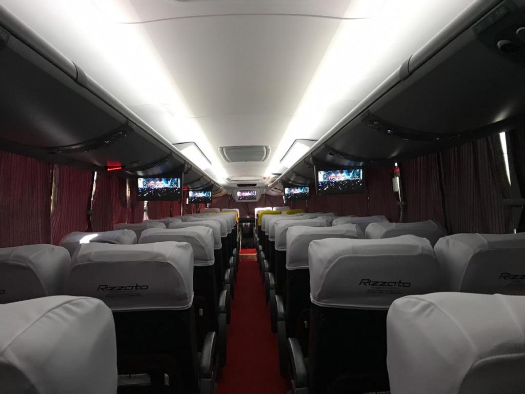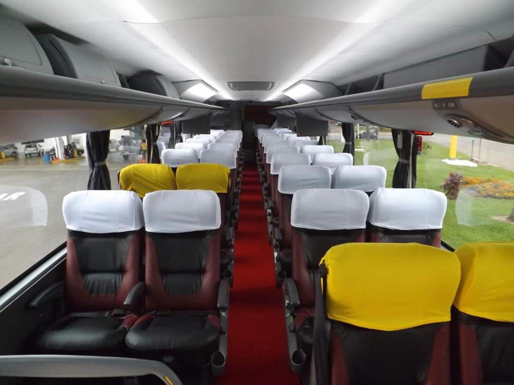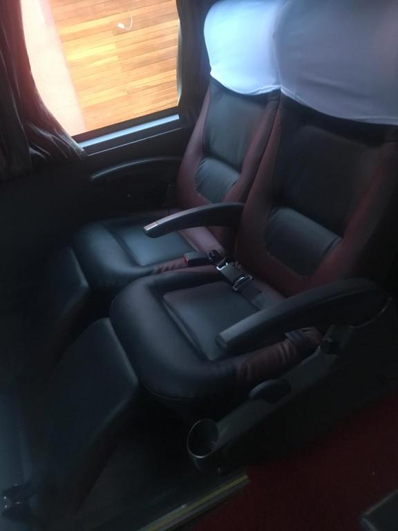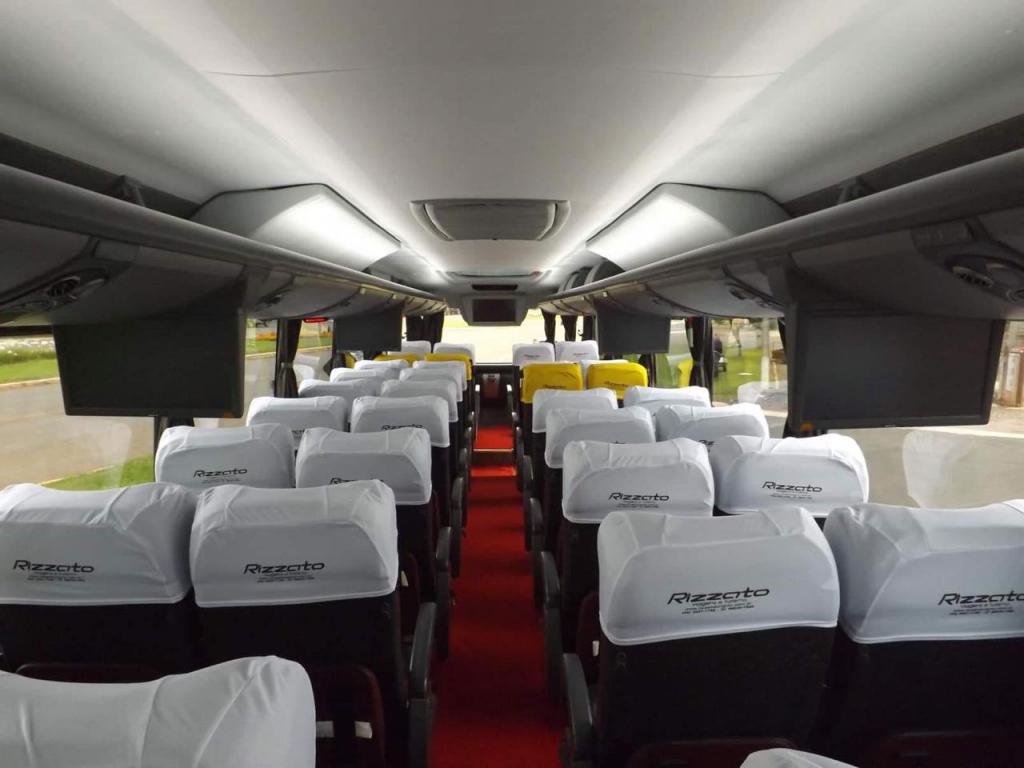 5 MONITORES, AR CONDICIONADO , CALEFAÇÃO , WC , WI-FI , 2 GELADEIRA ELÉTRICA , MICRO-FONE , TOMADAS 110V , POLTRONAS RECLINAVEIS SOFT , ENCOSTO DE PERNAS , 44 LUGARES LEITO TURISMO .