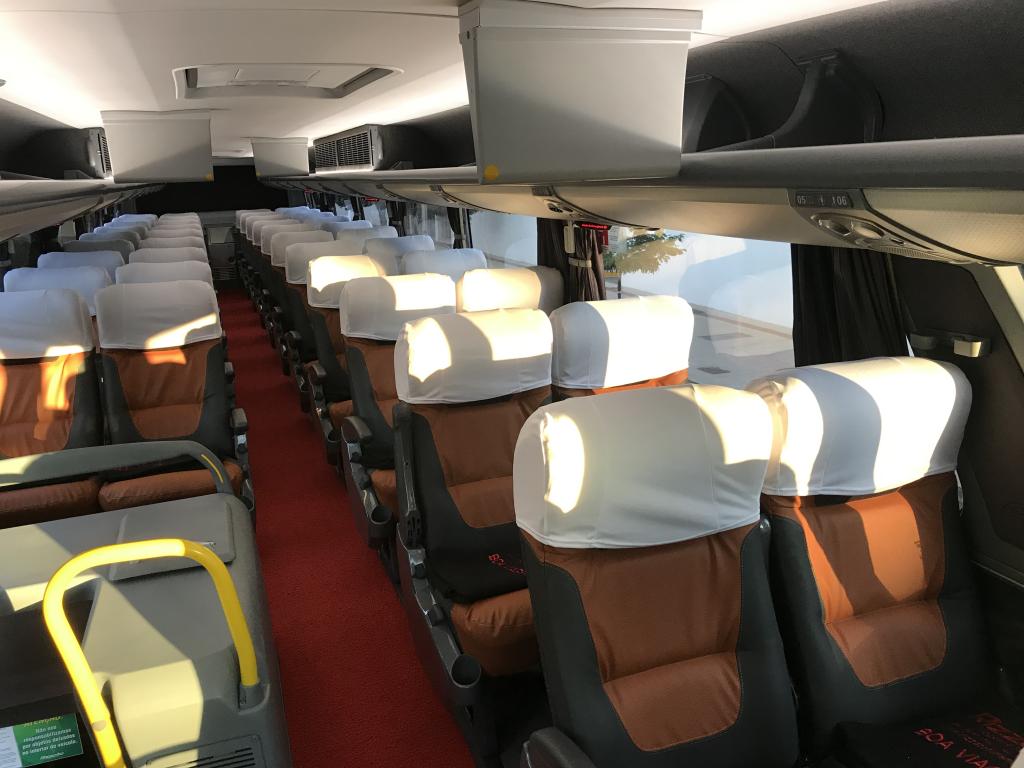 60 Lugares - Leito Turismo - Ar Condicionado - Calefação - 4 Monitores Dvd - Salão Superior - 1 Monitor no Salão Inferior - 3 Frigobares - Tomadas Usb individual - 1 Wc - Bancos em Couro Reclináveis com Encosto de Pernas - Veiculo com Acessibilidade